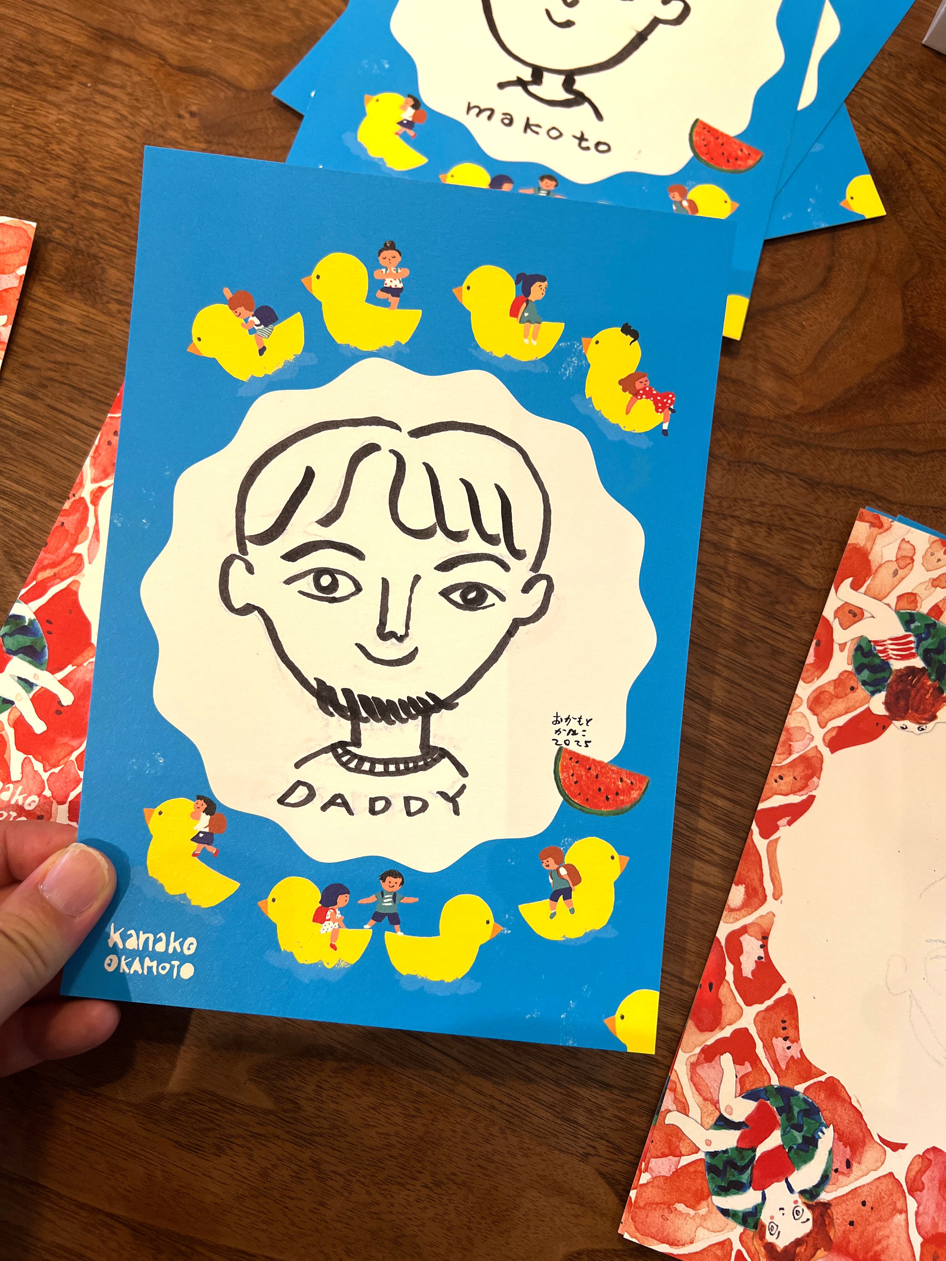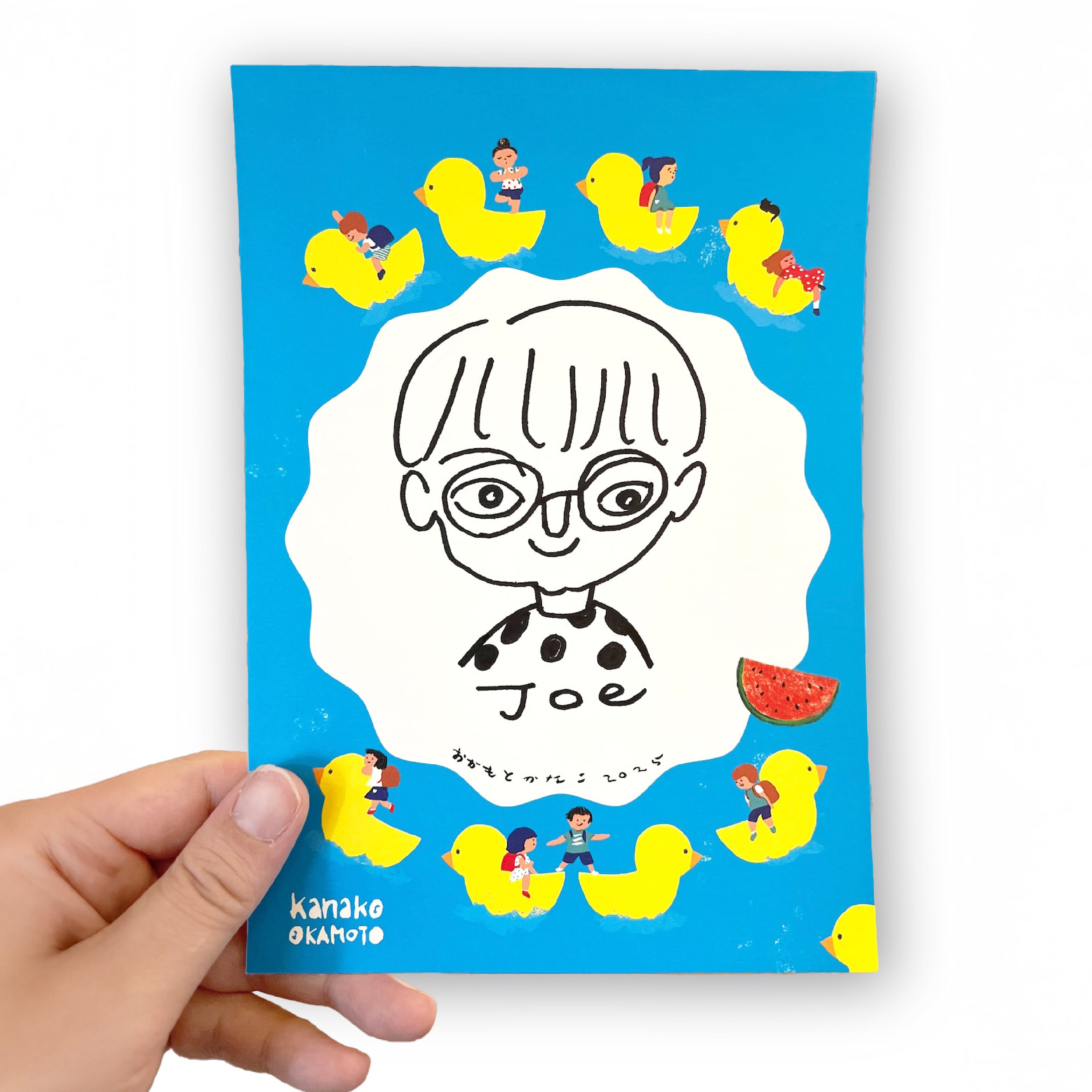 お送りいただいた写真をもとに、オリジナルのカードにあなたの似顔絵を描きます。