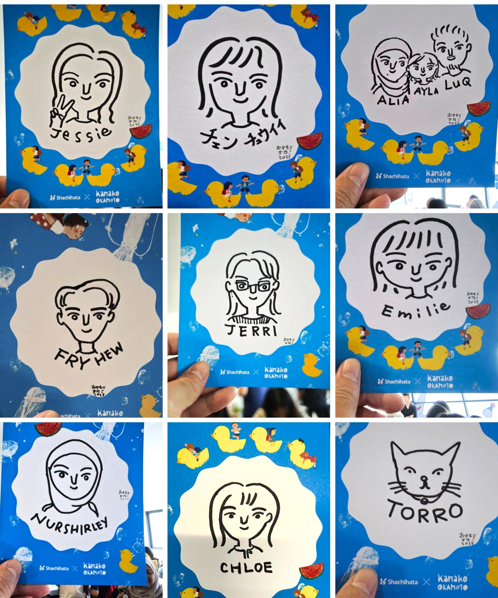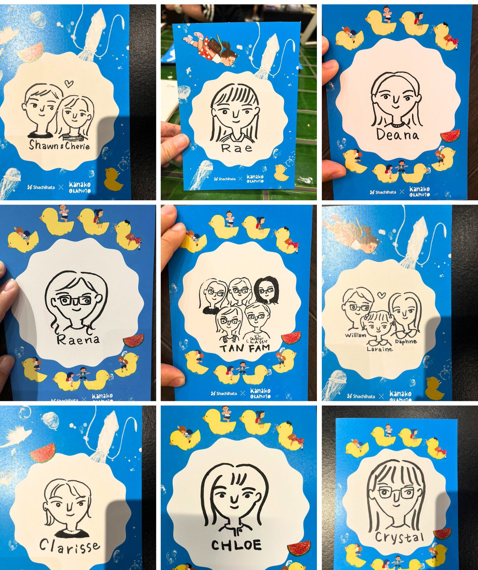イベントで大人気の作家による一つ一つ丁寧に描く人気の似顔絵です。