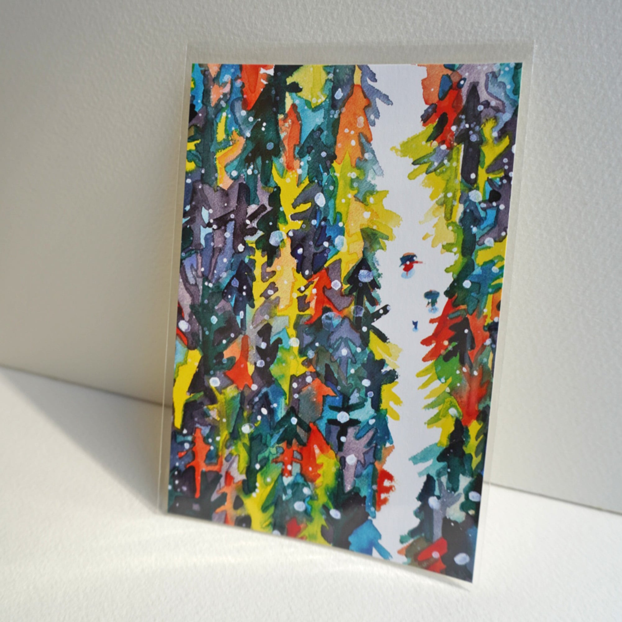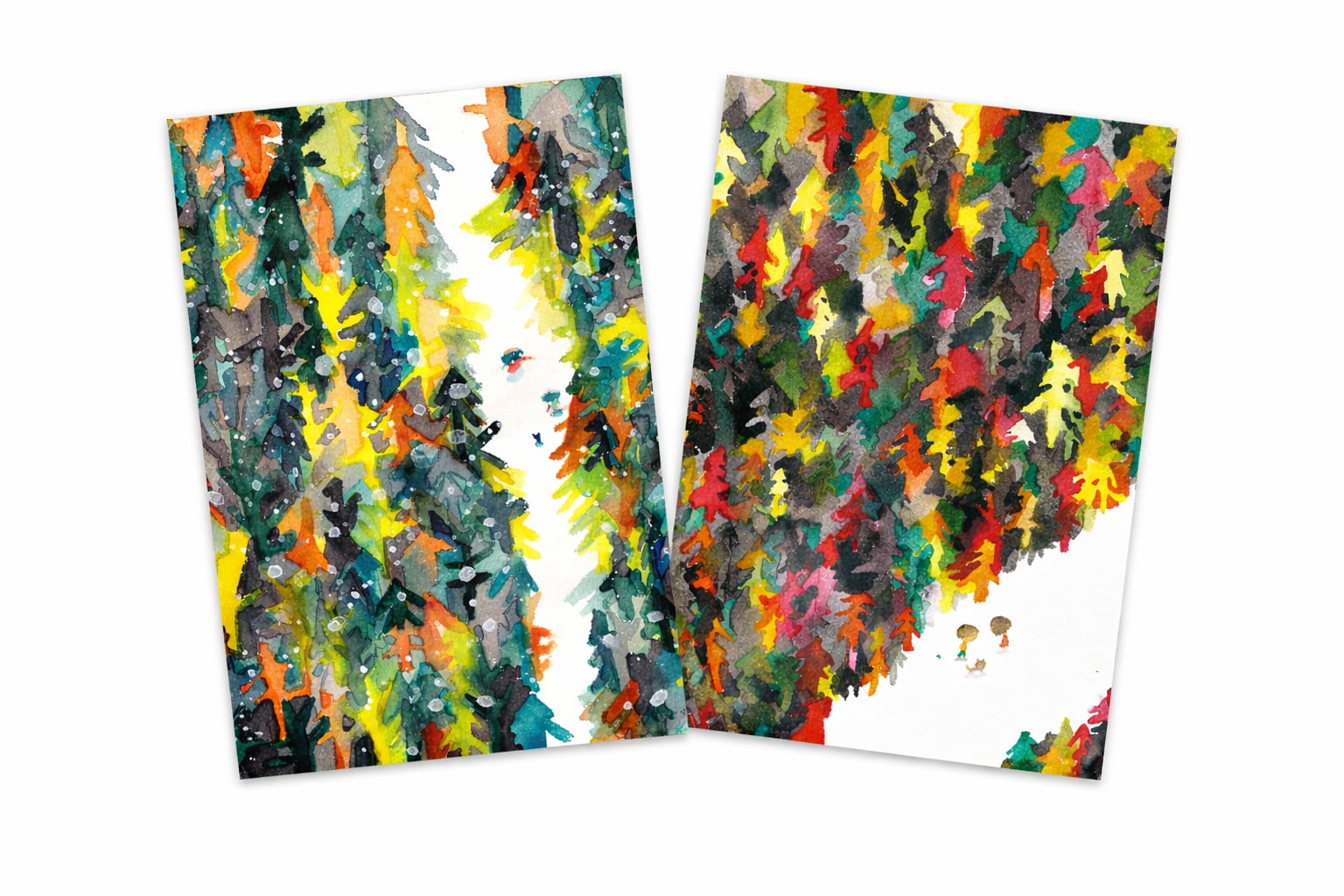 This is a set of two postcards: Autumn Forest and Winter Forest.